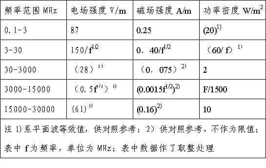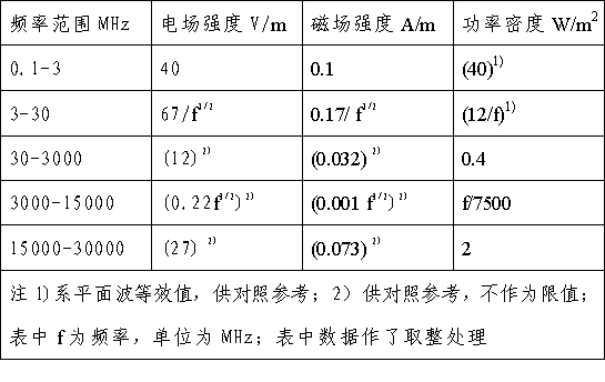對于一個發(fā)射幾種頻率的輻射或存在多個輻射體時示範,其電磁輻射場的場量參數(shù)在任意連續(xù)6秒鐘內(nèi)的平均值之和,應(yīng)滿足下式要求: